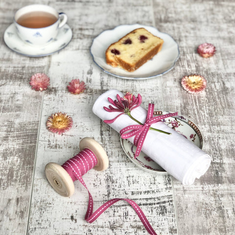 It comes in a rich raspberry colour and is approx 7mm wide x 10M roll